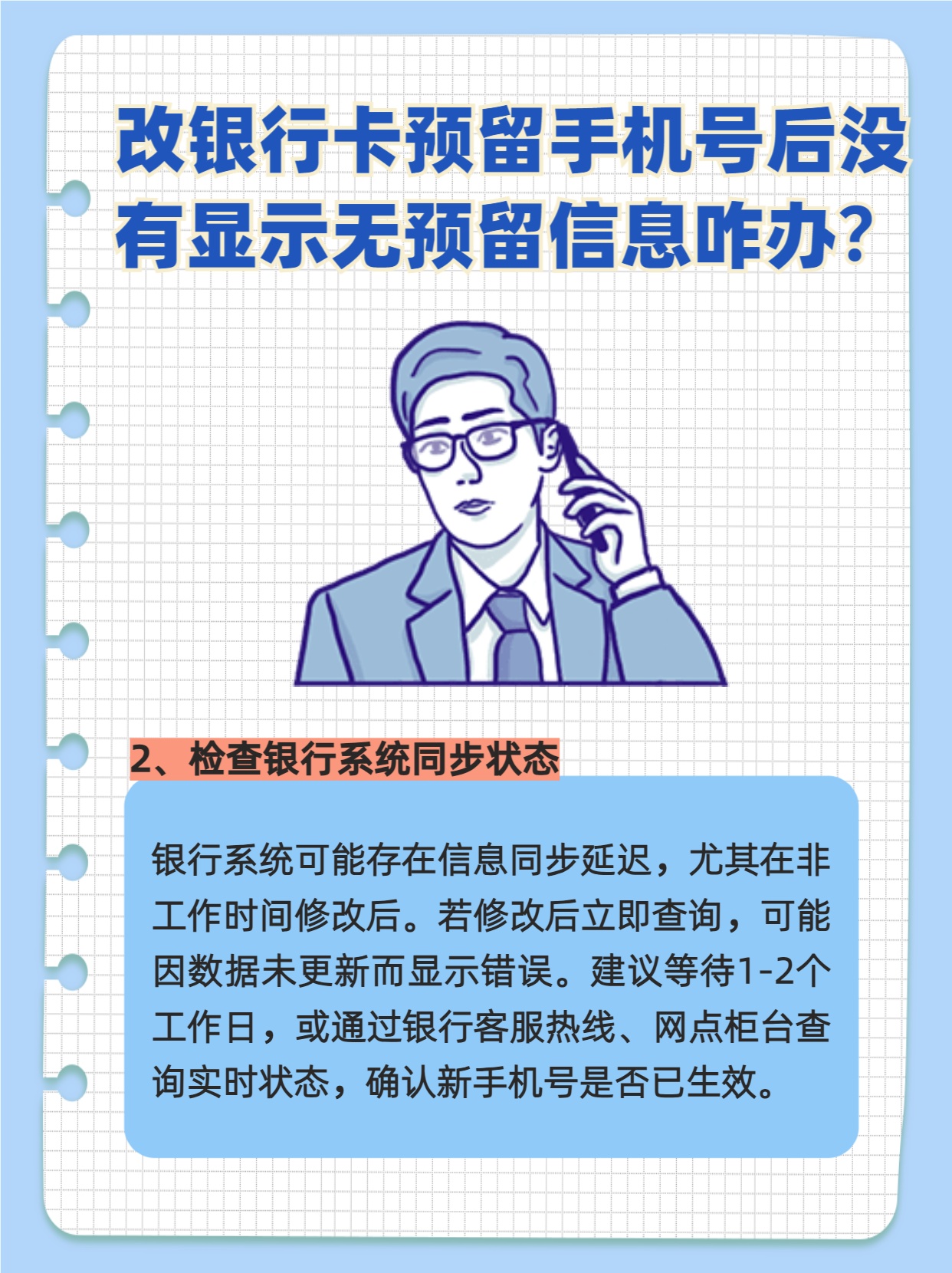 更改银行卡预留手机号后收不到短信更改银行卡预留手机号后收不到短信可能是因为银行系统尚未更新或手机号输入有误。建议检查新手机号是否正确,并联系银行客服确认短信服务是否已开通,以便及时接收账户变动通知。... 2025-12-04 - [阅读全文]